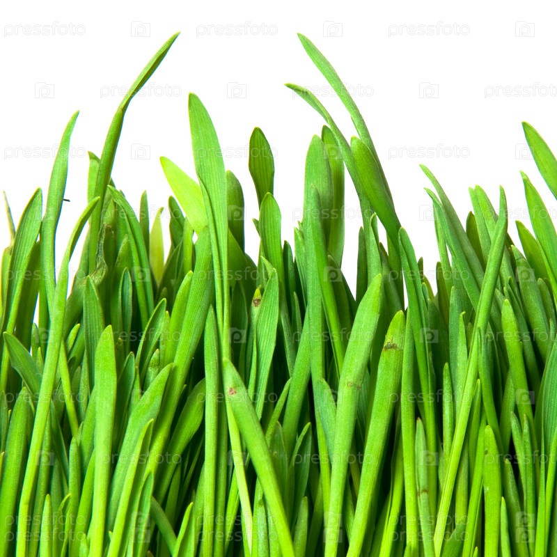 Зеленая трава на белом фоне