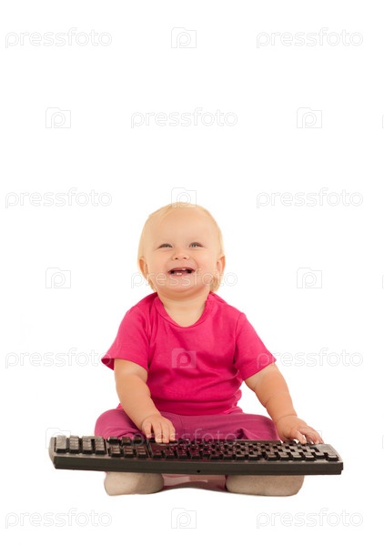 Ребенок играет с компьютерной клавиатурой