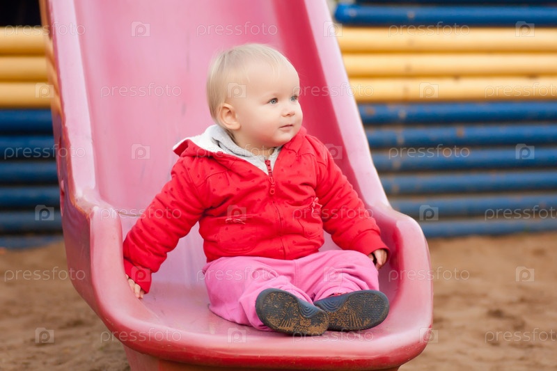 Маленькая девочка сидит на детской горке
