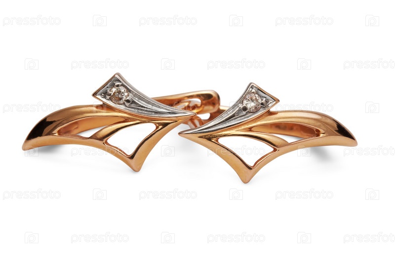 Золотые серьги с бриллиантами, изолированные на белом фоне