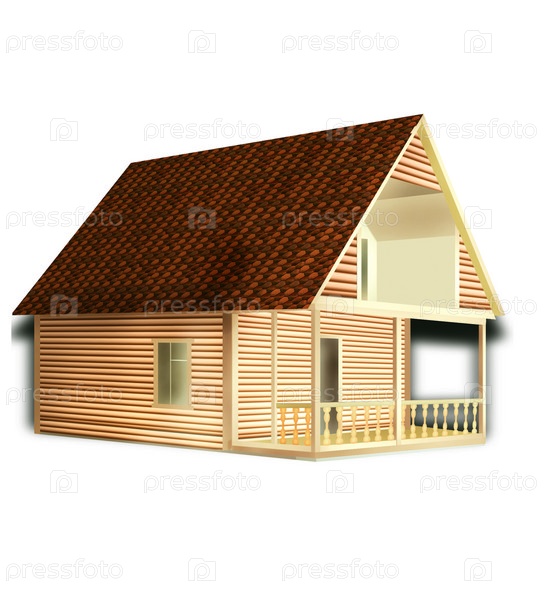 Бревенчатый одноэтажный дом, изолированный на белом фоне