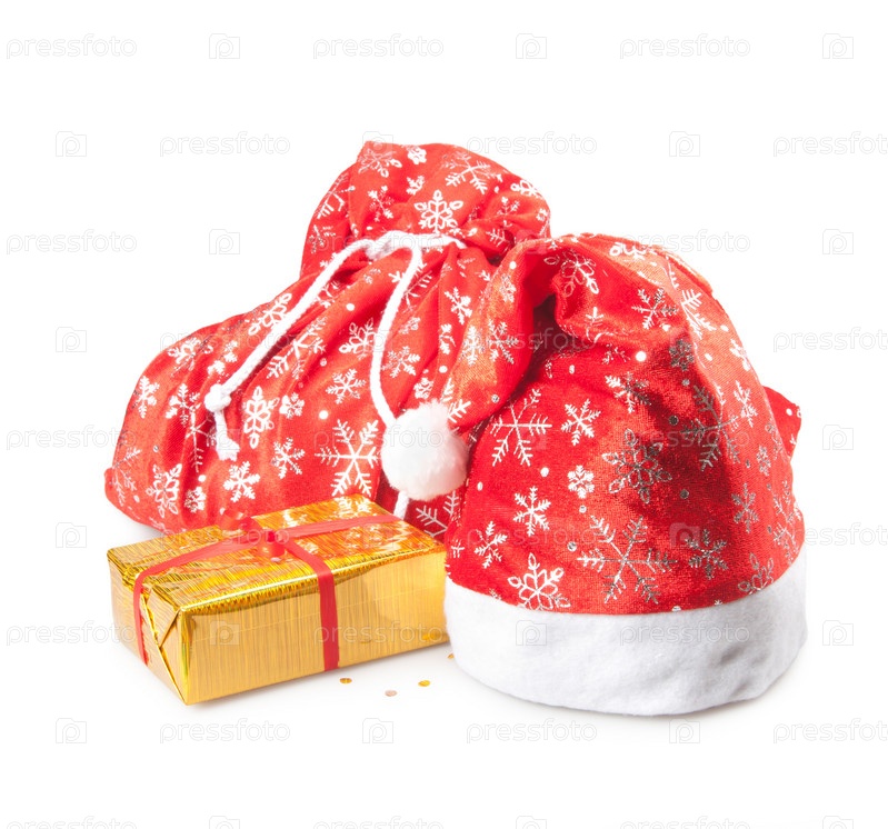 Новогодние шапка, мешок и подарочная коробка