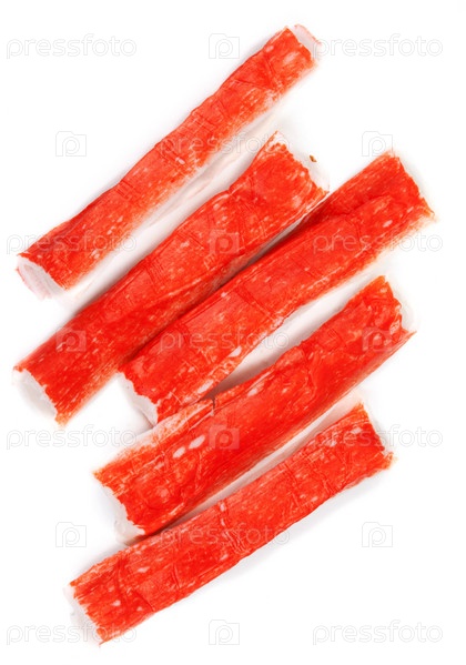 Крабовые палочки на белом фоне