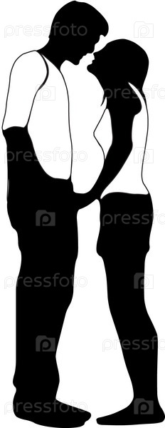Черно-белая иллюстрация целующихся парня с девушкой