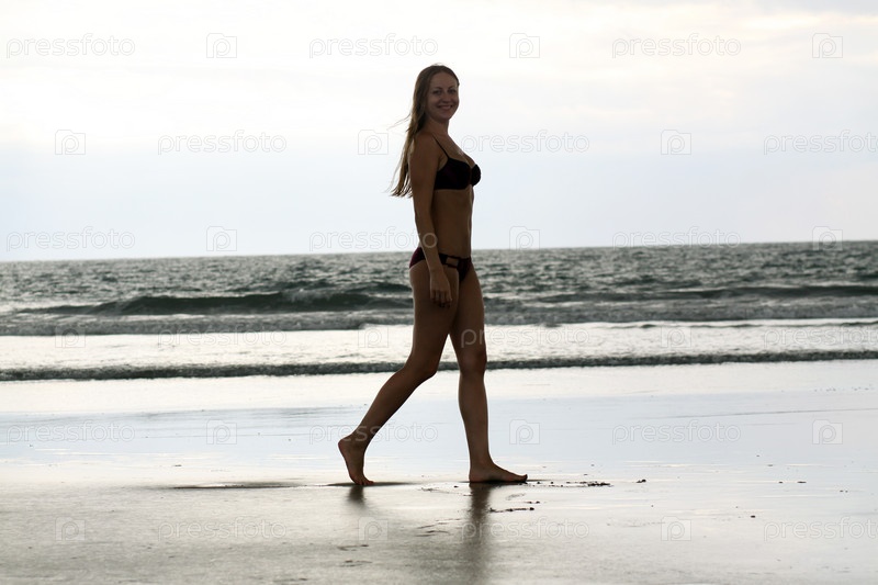 Молодая девушка, гуляющая по берегу моря
