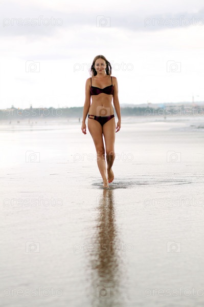Молодая девушка, гуляющая по берегу моря