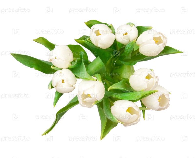 Букет свежих тюльпанов на белом фоне
