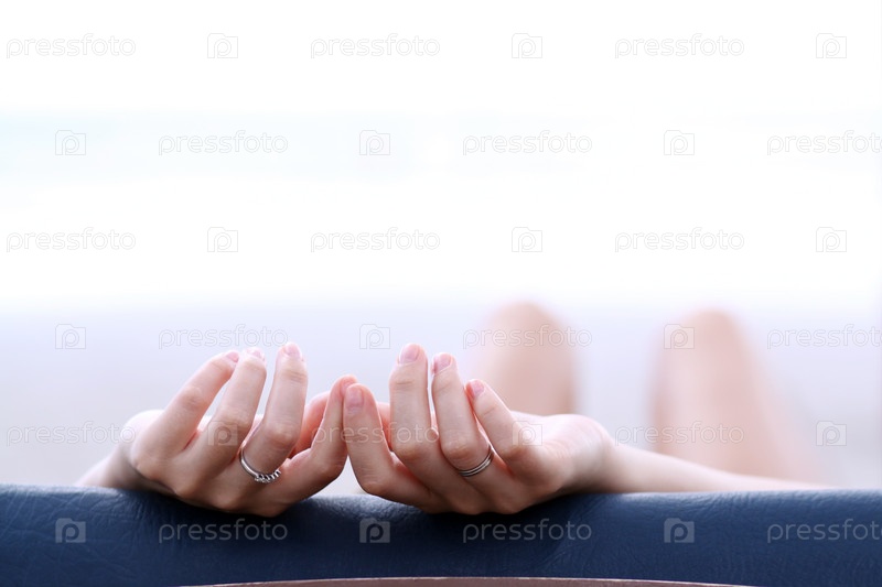 Руки девушки, лежащей в шезлонге