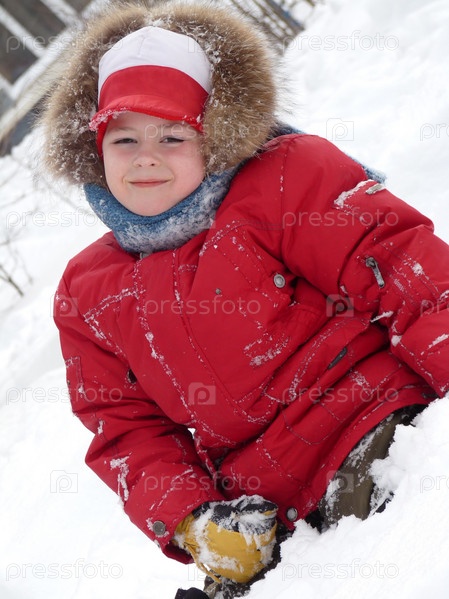 Мальчик сидит на снегу