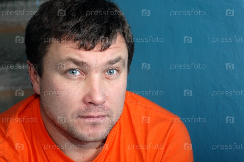 Серьезный мужчина на фоне старой синей стены