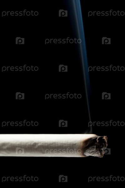 Тлеющая сигарета на черном фоне
