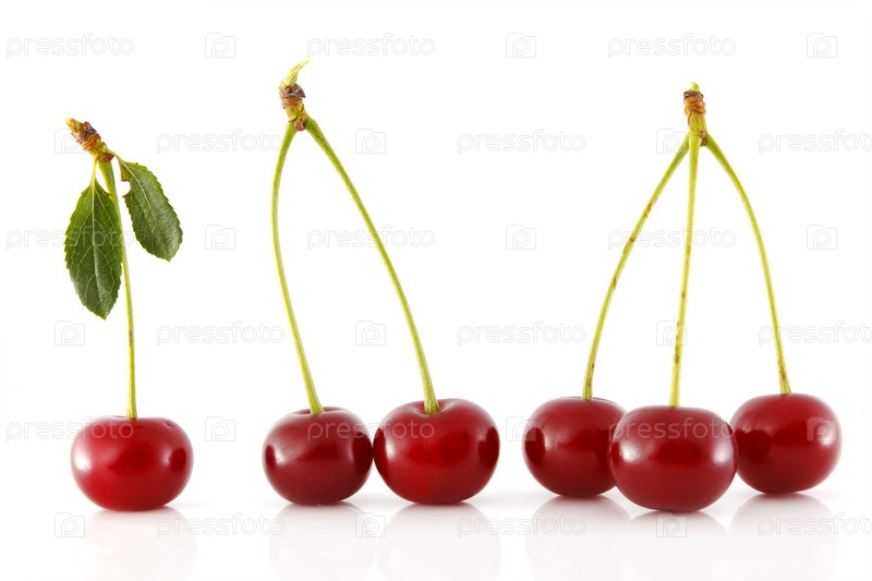 Несколько вишен с веточками, изолированные на белом фоне