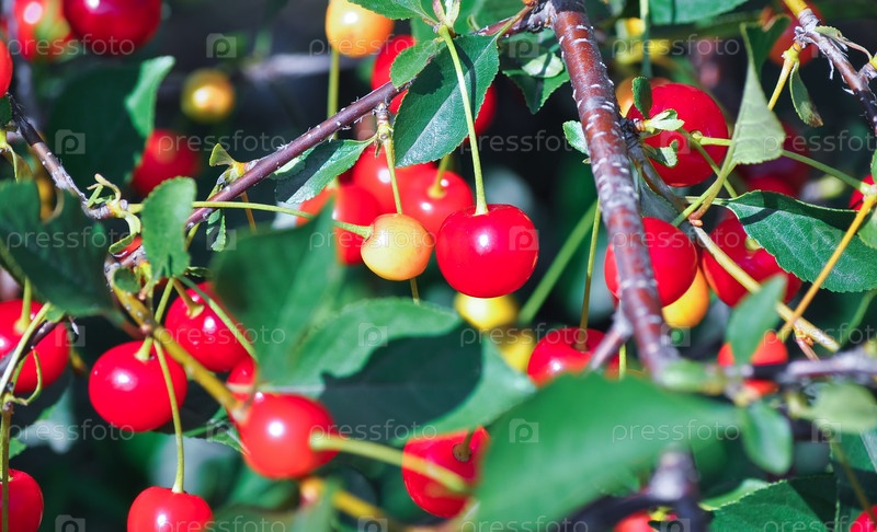 Ягоды вишни на ветке