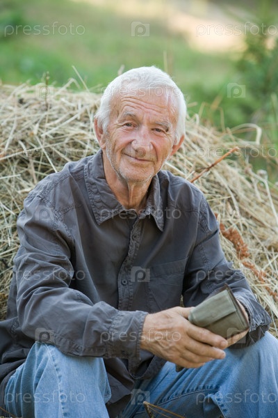 Пожилой мужчина с кошельком в руках