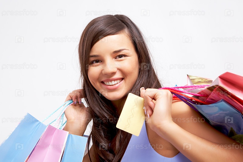 Счастливая девушка с покупками