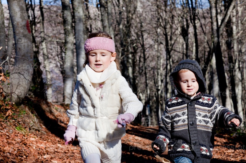 Дети на прогулке в осеннем парке