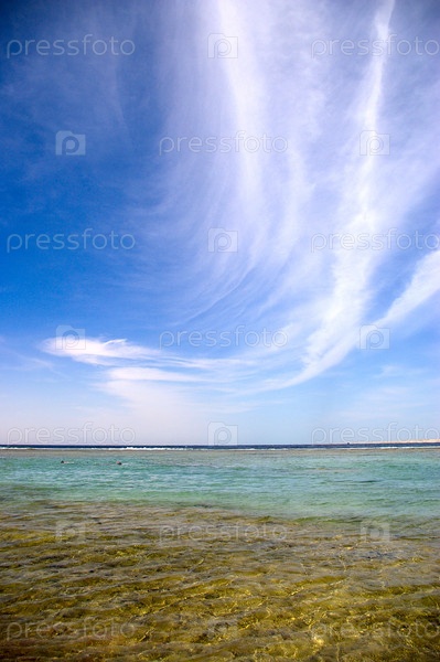 Кристально чистая вода моря и облачное небо