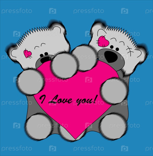Открытка с двумя медвежатами с сердцем на синем фоне