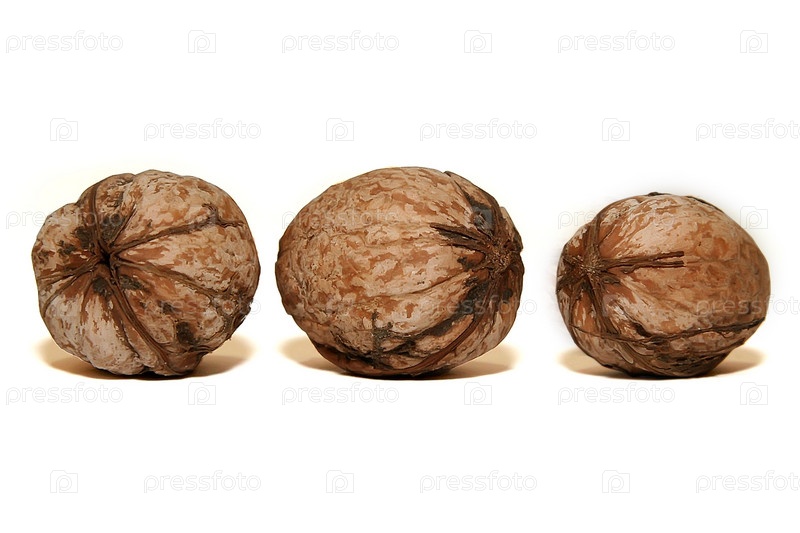 Три грецких ореха на белом фоне