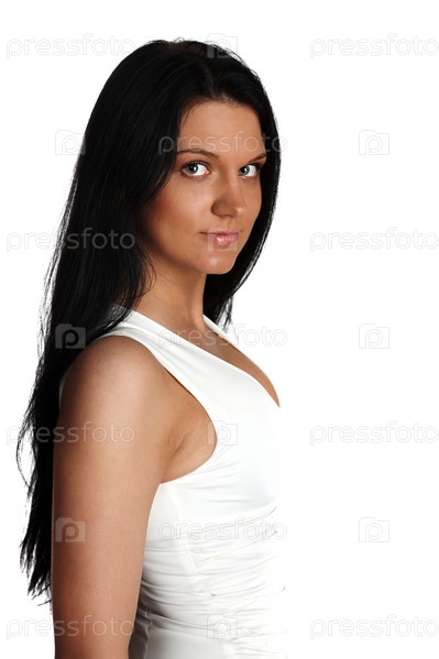 Молодая брюнетка на белом фоне