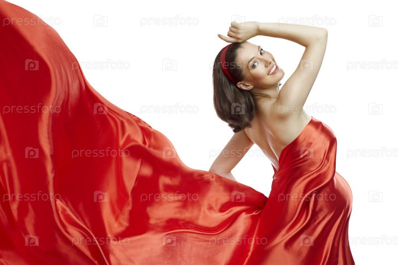 Красивая молодая женщина в длинном красном платье