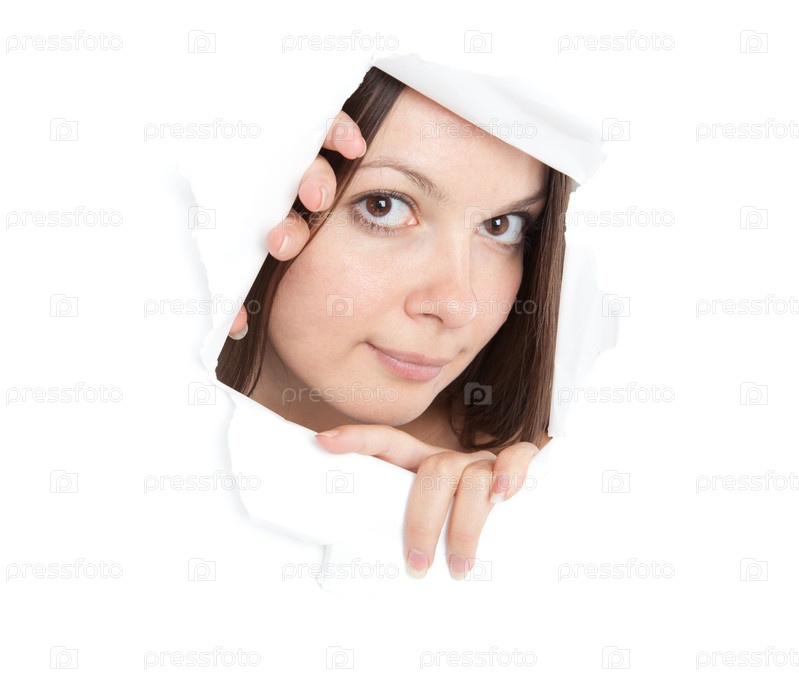 Девочка смотрит сквозь отверстие в бумаге