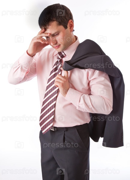 Бизнесмен в депрессии, изолирован на белом