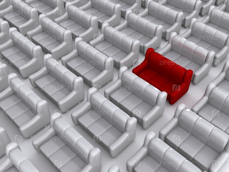 Красный диван среди белых