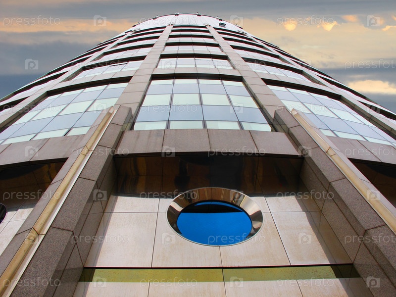 Небоскреб на фоне облачного неба