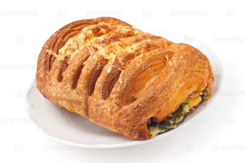 Слоеный штрудель на тарелке, изолированный на белом фоне