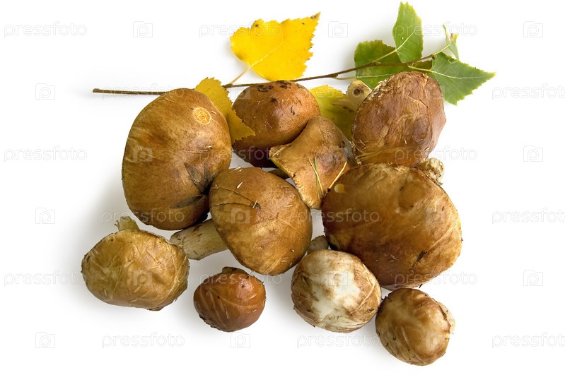 Куча маслят на белом фоне