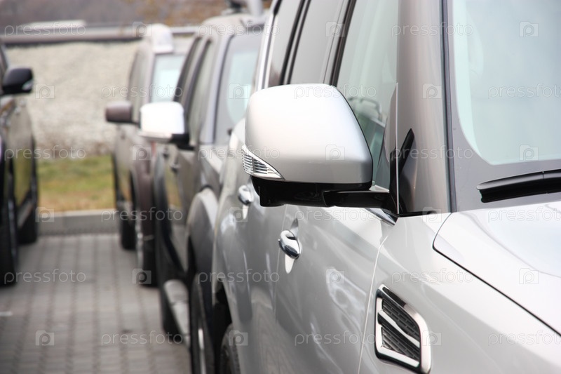Автомобили стоят в один ряд