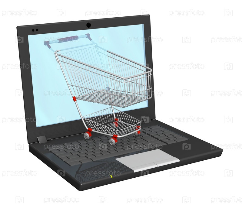 Символичная тележка для покупок на ноутбуке