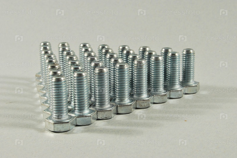 Стальные болты не сером фоне
