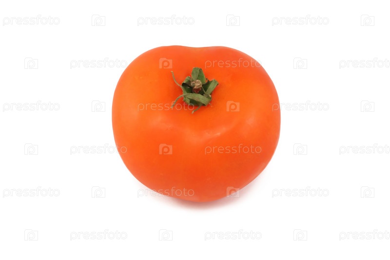 Одинокий свежий красный помидор, изолированный на белом фоне
