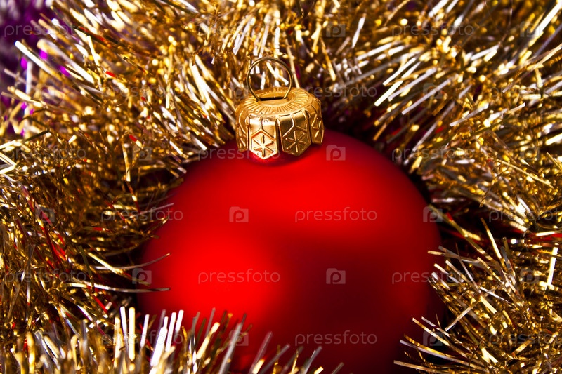 Елочная игрушка на фоне мишуры