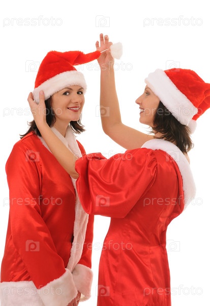Две привлекательные женщины в рождественских костюмах