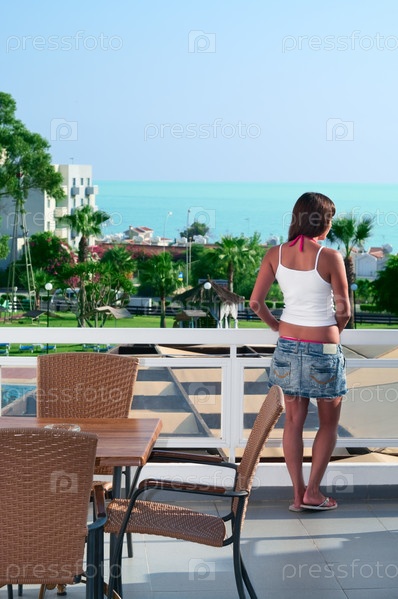 Молодая красивая девушка на балконе отеля