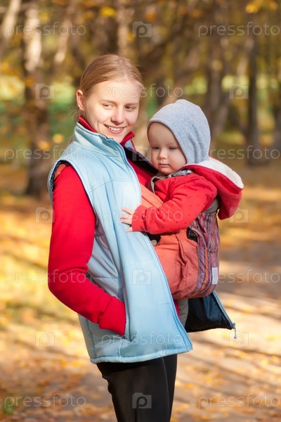 Молодая очаровательная мама с ребенком в парке