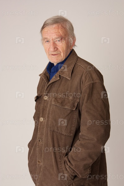 Пожилой мужчина в коричневой куртке