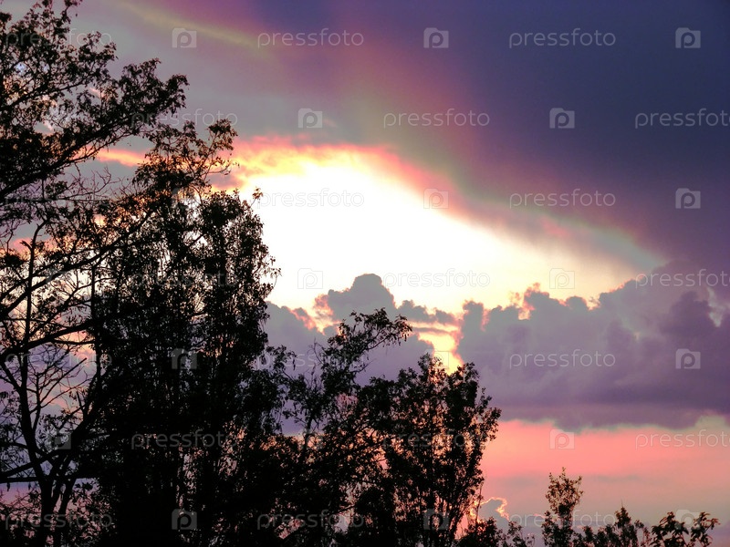 Закат солнца Солнечные лучи проникают сквозь темные облака