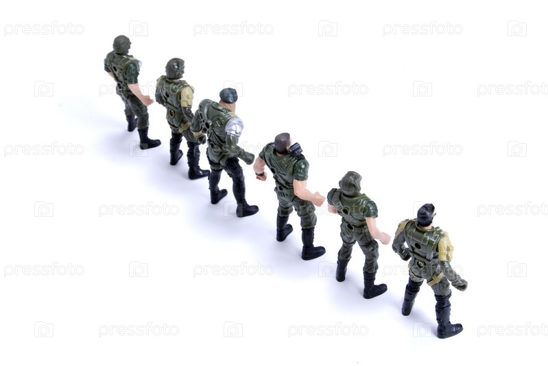 Коллекция игрушечных солдатиков в камуфляже на белом фоне