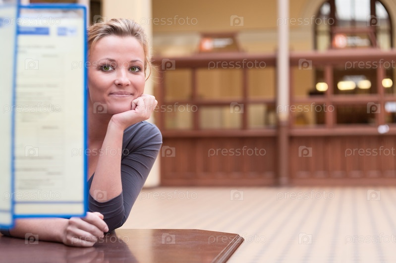 Молодая девушка, выглядывающая из-за папок с информацией