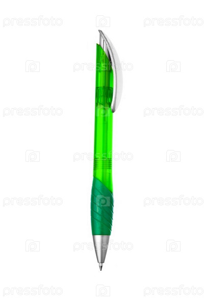 Зеленая шариковая ручка на белом фоне