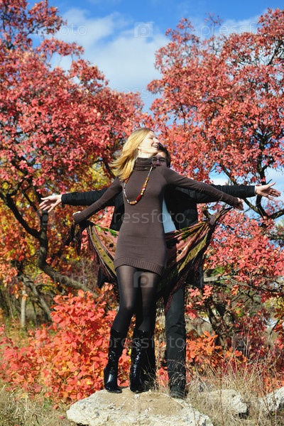 Молодая пара на фоне осеннего парка