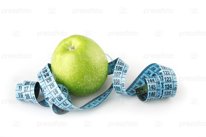 Яблоко с сантиметром на белом фоне