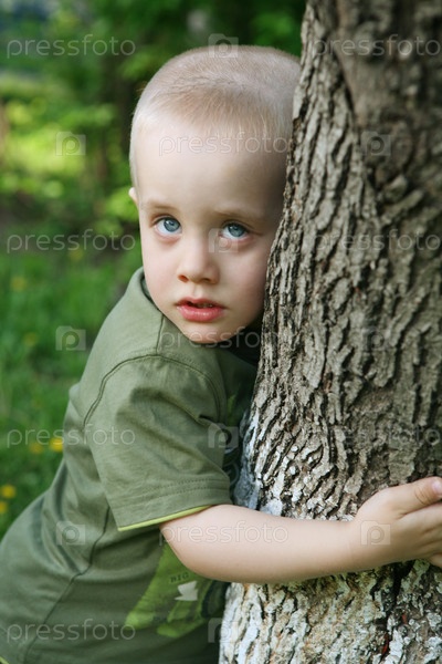 Ребенок, прислонившийся к дереву