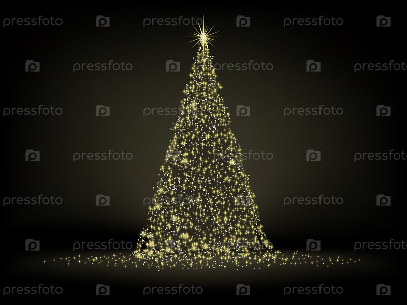 Елка в золотых огнях ночью