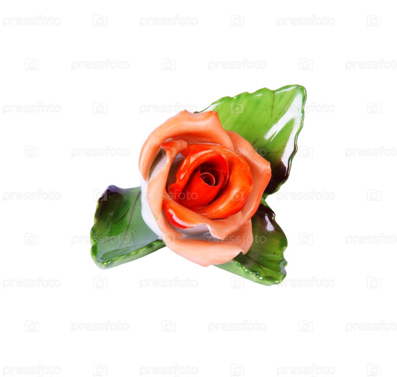 Ближайшее изображение очаровательной ретро-керамической розы, изолированной (путь вырезания)