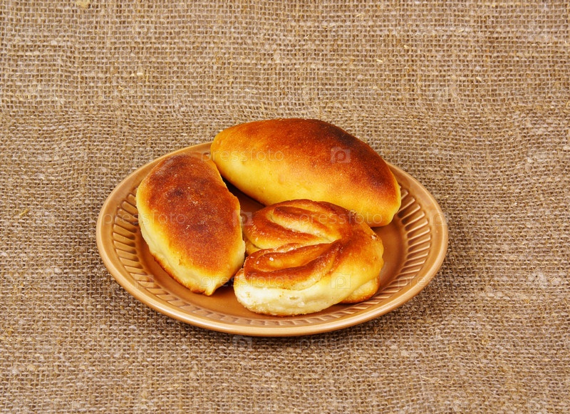 Тарелка с домашними пирогами на холстом фоне